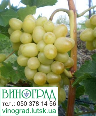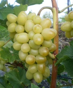 Аксін'я [Талісман х Кишмиш променистий] - гібридна форма винограду дуже раннього терміну дозрівання. Квітка двостатева. Грона великі, вагою 600-1200 грамів і більше, конічної форми, середньої щільності. Ягода дуже велика, вагою 10-15 грам, янтарно-жовтого кольору, м'ясисто-соковита з мускатним ароматом. Виноград Аксін'я радує стабільним і хорошим урожаєм. До захворювань форма стійка. Морозостійкість в межах -23 ° С. Дуже перспективний сорт.