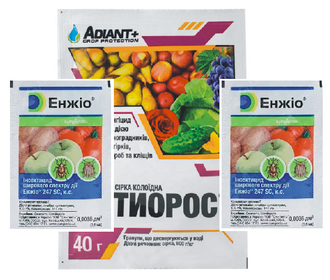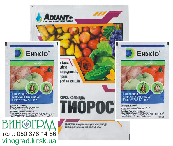Бакова суміш №5 для обробки винограду: 1шт. Тиорос 40 г Фунгіцид + 2шт. Енжіо 3,6мл Інсектицид на 10л води