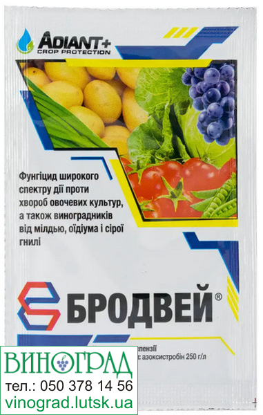 Препарат Бродвей забезпечує ефективний фунгіцидний захист для винограду, цибулі, томатів, перцю, огірків, кавунів, картоплі, капусти, буряків, гороху, газонів від сірої гнилі, пероноспорозу, мілдью, оїдіуму, чорної плямистості, інфекційного висихання, альтернаріозу, фузаріозного в'янення, антракнозу, макроспоріозу, парші, борошнистої роси, фітофторзу, аскохітозу, кіли, різоктоніозу, фомозу, несправжньої борошнистої роси, гнилей і багатьох інших захворювань.