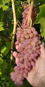 Кишмиш рожевий - безнасінний сорт винограду середнього періоду дозрівання. Квітка двостатеві. Грона великі, циліндричні, з розвиненими біля основи крилами. Ягоди овальної або слабояйцевідной форми, неоднорідно пофарбовані в рожевий колір. Шкірочка тонка. М'якоть м'ясисто-соковита, смак приємний. Визрівання пагонів хороше. Кущі сильнорослі. Урожайність висока. Сорт винограду Кишмиш рожевий слабо уражається оїдіумом. Морозостійкість середня. Виноград використовується в основному для споживання в свіжому вигляді. При сушінні дає продукцію з високими смаковими якостями.