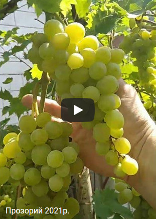 Прозорий - форма винограду раннього терміну дозрівання, врожайна. Кущі середньорослі. Грона великі і дуже великі (500- 1000 г). Ягоди великі 27x23 мм (6 г), овально-конічні, білі прозорі. М'якоть м'ясиста з шавлієво-мускатним смаком. Цукристість 17-21%. Зрілі ягоди можуть пошкоджуватися осами. Пагони визрівають добре. Стійкість сорту до хвороб висока. Морозостійкість -25 ° С. Вино, виготовлене з цього сорту має стійкий мускатний смак.