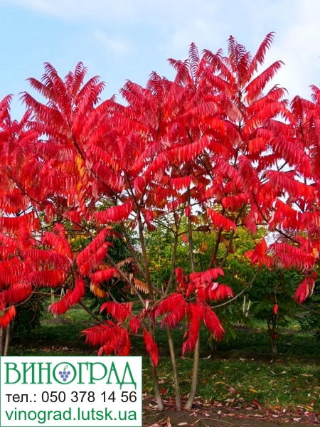 Шукаєте рослину, яка додасть Вашому саду екзотичного вигляду, яскравих осінніх фарб та абсолютної невибагливості? Представляємо вам саджанець сумаху (Rhus), також відомого як Оцтове дерево – ідеальний вибір для створення унікального ландшафту.